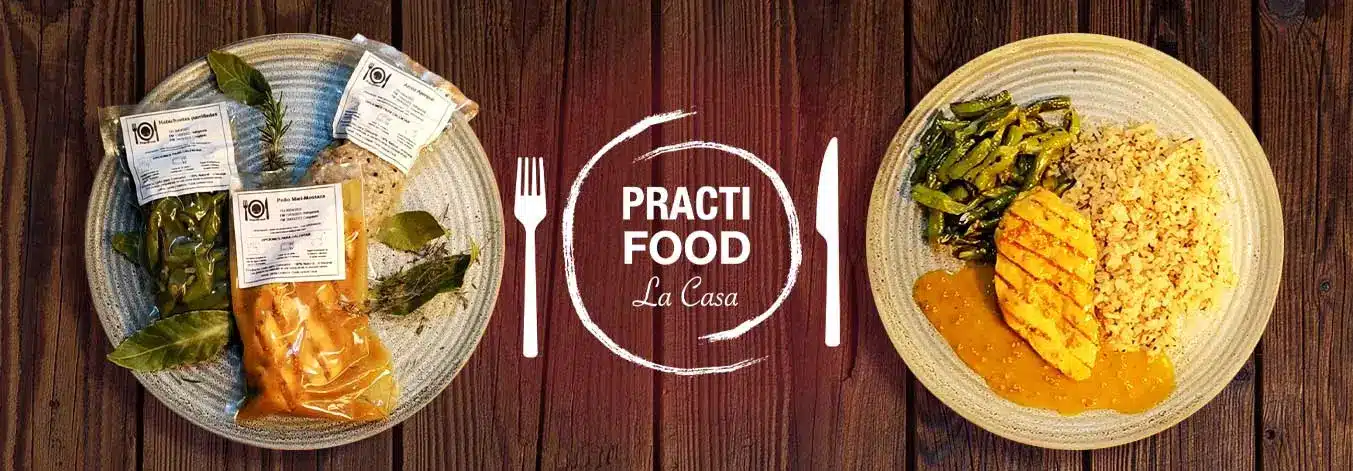 PractiFood es un servicio de alimentos y comidas preparadas, listas para consumir, empacadas al vacío, de venta online y entrega a domicilio.